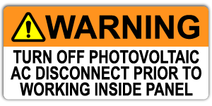 WARNING TURN OFF AC DISCONNECT PRIOR TO WORKING INSIDE PANEL